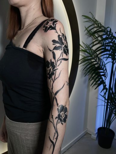 Sie beginnen beim Design und reichen über die Anpassung an deine Körperlinien und deine Persönlichkeit. Ich erstelle keine austauschbaren Sticker für deinen Körper, sondern individuelle Designs, die sich natürlich an dich anpassen und zu dir gehören. Es geht nicht darum, ein Stencil aufzulegen und abzuarbeiten – sondern um echte, kreative Arbeit, mit viel Feingefühl, Erfahrung und Persönlichkeit.